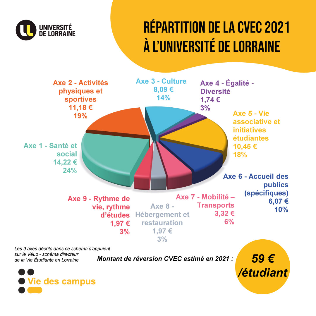 Pour ce faire, elle est répartie en trois grandes catégories de financement en soutien aux axes du VÉLo (schéma directeur de la Vie Étudiante en Lorraine) :