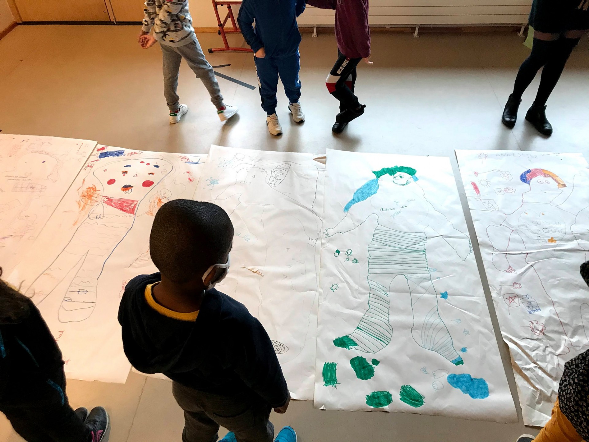Depuis maintenant deux ans, le Centre Culturel André Malraux, Scène Nationale de Vandoeuvre, partage le temps fort jeune public "Wonderland "avec les étudiant·e·s de Master MEEF de l'INSPÉ de Lorraine (Institut National Supérieur du Professorat et de l'Éducation) qui œuvrent, autour des propositions artistiques du CCAM, à la réalisation d'activités et d'ateliers à destination des publics scolaires et médico-sociaux de la Scène Nationale. Cette année, le projet s'est tissé en lien avec le travail et l'univers visuel d'Hervé Walbecq, auteur, dessinateur et comédien dont l'exposition Le poisson qui vivait dans les arbres devait être accueillie au CCAM en novembre dernier et dont les dessins -et la présence- peuplent le spectacle L'oiseau migrateur (Dorian Rossel, Cie STT) dont huit représentations étaient également programmées. En octobre, les étudiant·e·s ont tout de même pu rencontrer Hervé Walbecq au CCAM et s'imprégner de son parcours et de ses créations. Malgré l'annulation contrainte de "Wonderland", puis de l'exposition et du spectacle, ce partenariat et ces ateliers artistiques ont pu être maintenus, en les organisant directement dans les salles de classe de Vandoeuvre ! Ainsi, du vendredi 04 au jeudi 10 décembre, dans le respect de tous les "gestes barrières", les étudiant·e·s/futur·e·s enseignant·e·s sont allés à la rencontre de treize classes de l'école Jeanne d'Arc, de l'école Paul Bert et de l'IME Raymond Carel de Vandœuvre pour une série d'ateliers révélant de nombreux talents : musique et création sonore, écriture et imagination, dessin et collages...