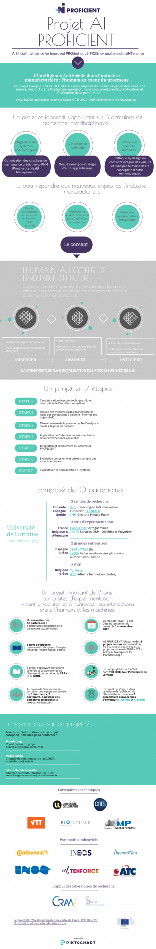 Le projet AI-PROFICIENT a été obtenu dans le cadre de l’appel à projets européens H2020 « ICT – Artificial Intelligence for Manufacturing ». Il fait partie des 8 projets retenus sur un total de 73. Consortium :