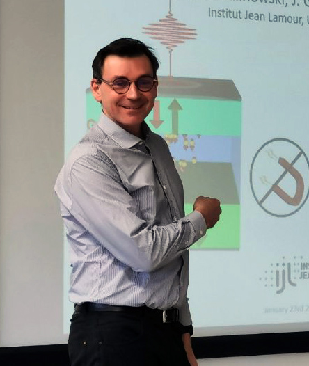 Les travaux de Stéphane MANGIN portent sur la possibilité de manipuler l'aimantation à l'échelle nanométrique en utilisant différents moyens tels que : des impulsions ultra-rapides de champ magnétique, de champ électrique, courant et/ou lumière polarisé-e. Il se concentre actuellement sur l'interaction entre l'aimantation et le moment cinétique porté par les électrons et la lumière. L’équipe Spintronique et Nanomagnétisme qu’il dirige à l’IJL a démontré, pour la première fois, qu’un seul pulse laser ultra-rapide pouvait retourner l’aimantation d’un nano-objet ferromagnétique. Il a aussi été démontré qu’un pulse électronique de quelques femto-secondes à quelques pico-secondes permettait de manipuler l’aimantation.