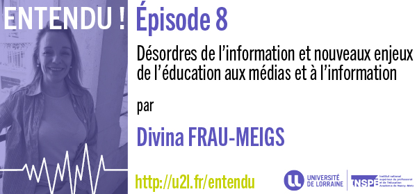 Le 8e podcast de notre série "Entendu!" est en ligne. Il s'agit de la conférence de Divina FRAU-MEIGS : "Désordres de l'information et nouveaux enjeux de l'éducation aux médias et à l'information" donnée le 20 janvier dernier. Bonne écoute ! http://u2l.fr/entendu