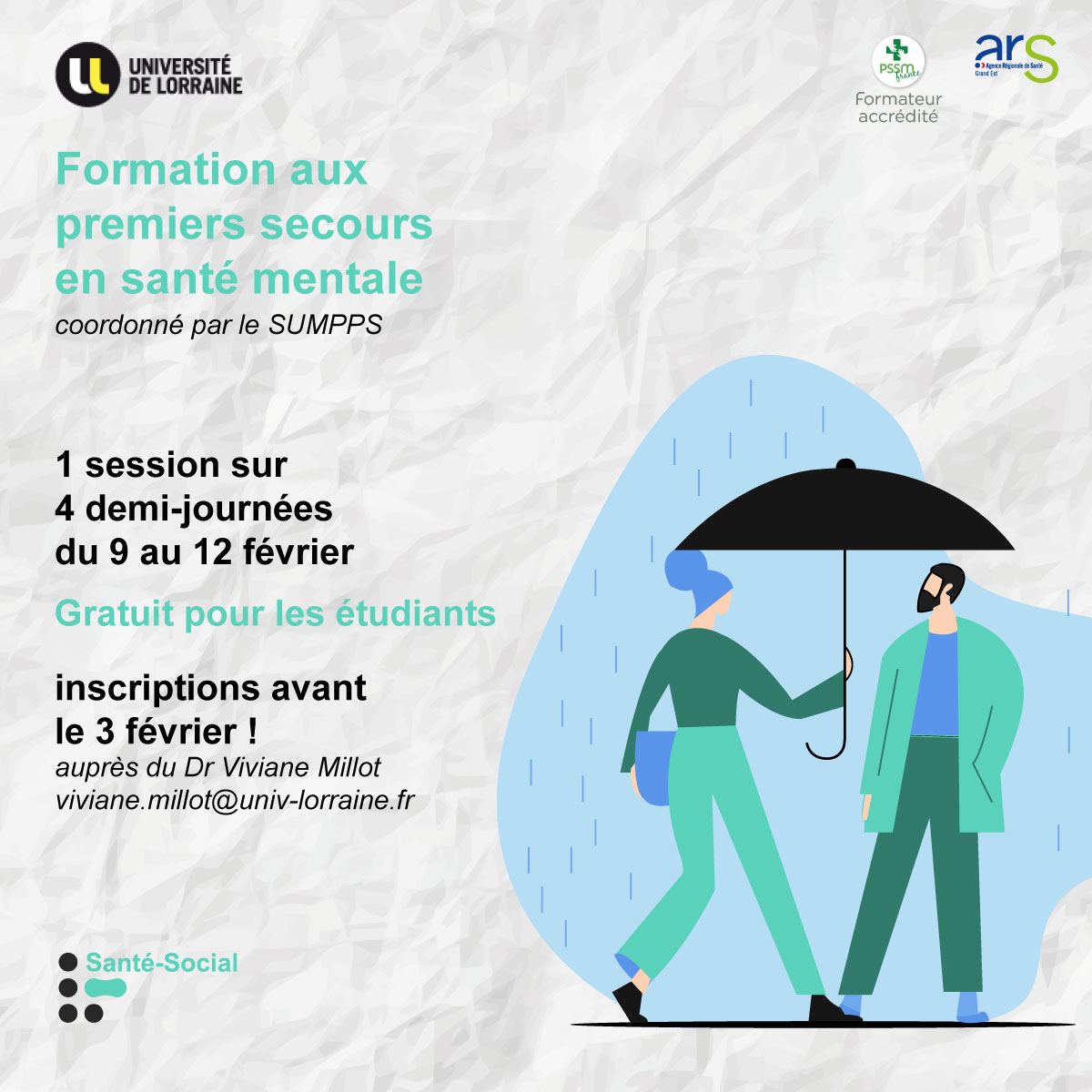 Infos et inscriptions avant le 3 février auprès de Viviane Millot, médecin au SUMPPS par e-mail à viviane.millot@univ-lorraine.fr