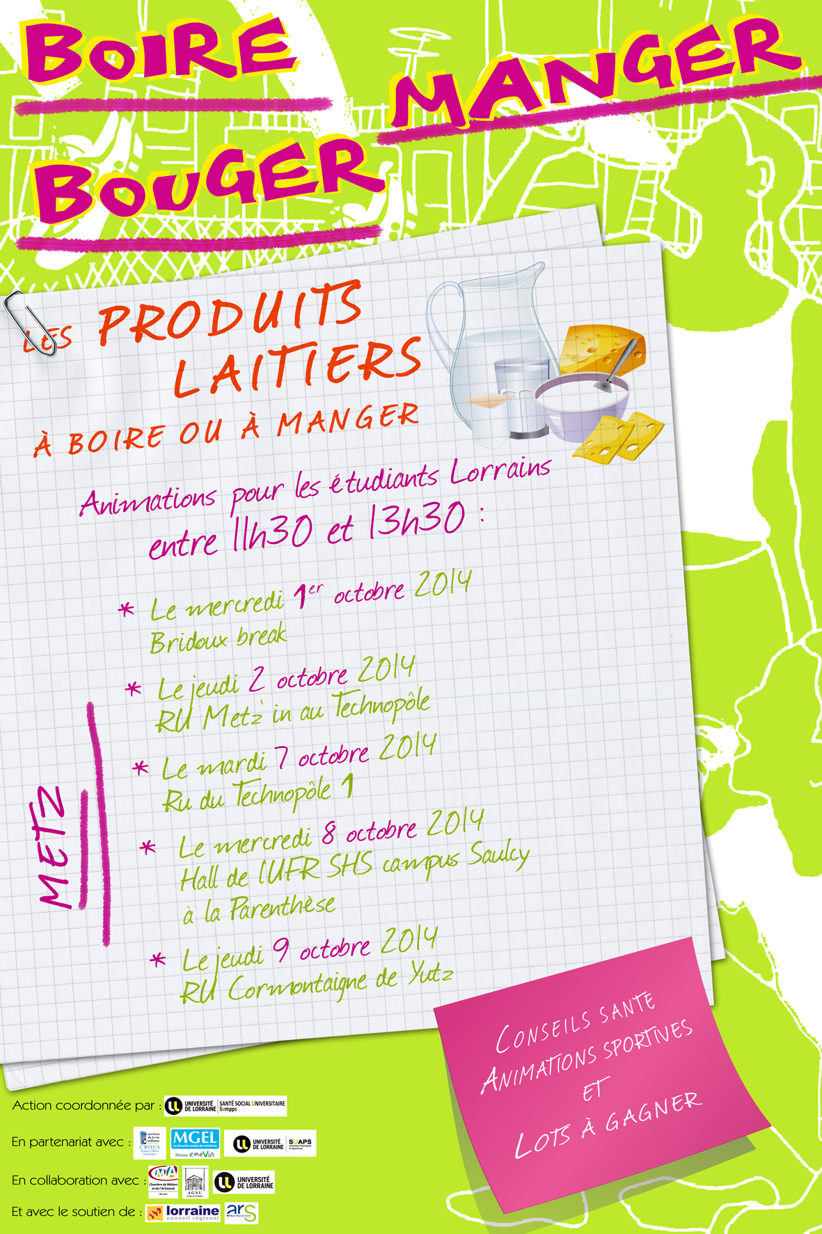 Le SUMPPS (Service universitaire de médecine préventive et de promotion de la santé) de l'Université de Lorraine anime cet automne une nouvelle édition du "Boire-Manger-Bouger" en mettant l'accent sur LES PRODUITS LAITIERS,