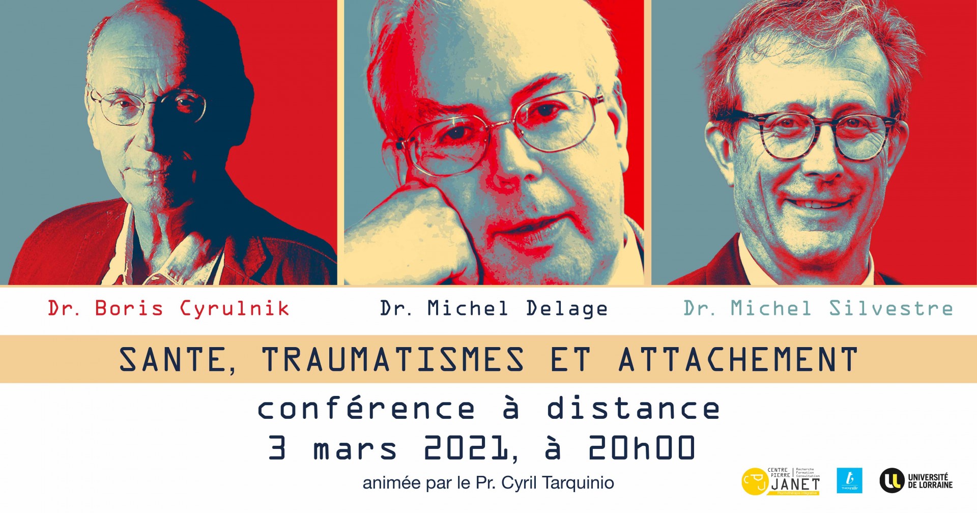 Le 3 mars 2021 à 20h00, Le Centre Pierre Janet organise, en partenariat avec la Ville de Thionville, une conférence à distance intitulée "Santé, traumatismes et attachement" avec :