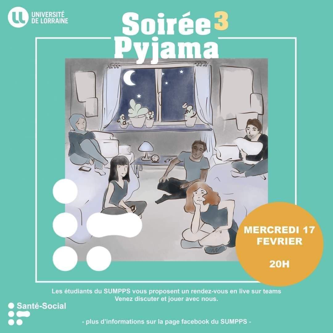 Les étudiants relais ont le plaisir de vous inviter à participer au troisième live de la série Pyjama party. Et si on prolongeait la Chandeleur ? Venez nous rejoindre ce 17 février à 20h pour faire des crêpes, s’amuser ensemble autour de jeux interactifs et discuter de sujets divers et variés !