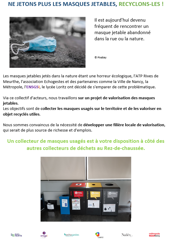 - complète les dispositifs "zéro déchet" développés par l'ENSGSI depuis plusieurs années https://factuel.univ-lorraine.fr/node/13020