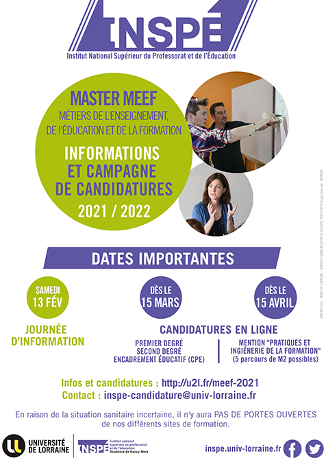 Toutes les infos sont en ligne ici : http://u2l.fr/meef-2021