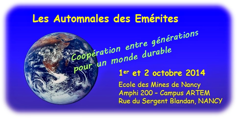 Les Émérites de Lorraine entendent mettre en évidence que ce schéma économique et sociétal est dépassé, dangereux pour l'environnement et préjudiciable pour l'équilibre social. Au travers de ce premier colloque des Automnales (1er et 2 octobre 2014) ils cherchent à démontrer, avec l'aide de conférenciers de renom, qu'un schéma qualitativement plus favorable doit s'appuyer sur une approche interdisciplinaire des procédés industriels et une coopération intergénérationnelle des forces vives de notre société. Imaginer des solutions technologiques respectant la durabilité des ressources naturelles et croiser l'imagination des jeunes diplômés avec l'expérience des séniors, c'est le défi du XXIème siècle qu'il faut relever pour que la France et l'Europe retrouvent un leadership dans le concert des nations développées, tout en respectant avec soin les ressources planétaires.