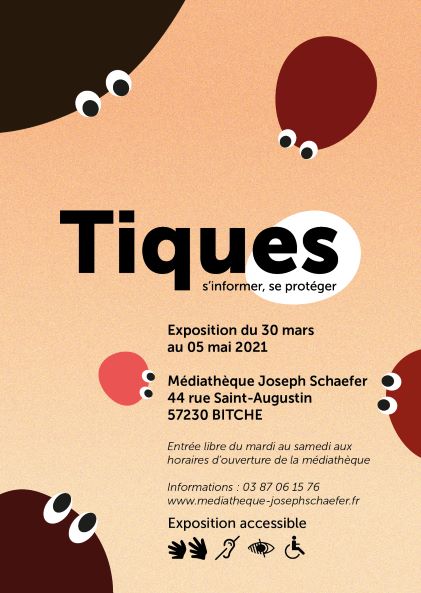La Médiathèque Joseph Schaefer de Bitche présente l’exposition Tiques : s’informer, se protéger * qui invite le public à mieux connaître la petite bête ainsi que son mode de vie. Au fil des manipulations et des observations, il adoptera les bons réflexes de prévention et il trouvera des informations sur les microorganismes véhiculés par les tiques. L’occasion de s’intéresser aux conséquences d’une piqûre et aux démarches à effectuer.