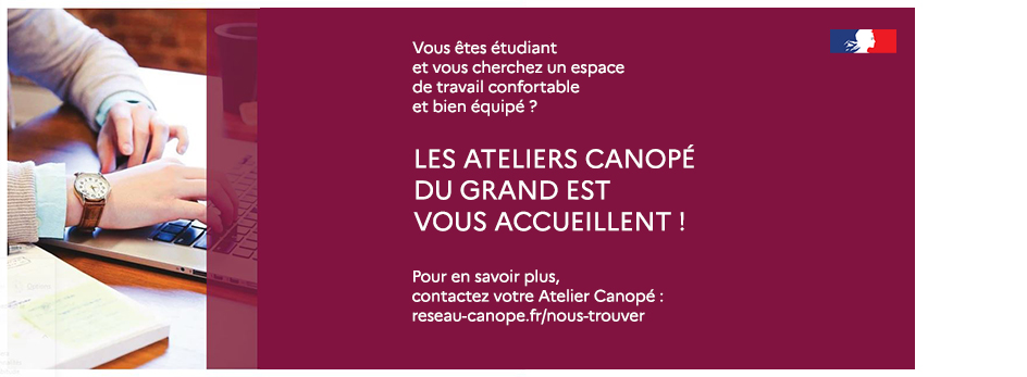 En cette période difficile, les atelier Canopé de l'académie de Nancy-Metz se mobilisent et proposent d'accueillir les étudiants qui le souhaitent, afin de pouvoir travailler et échanger dans un espace de travail ouvert et connecté.