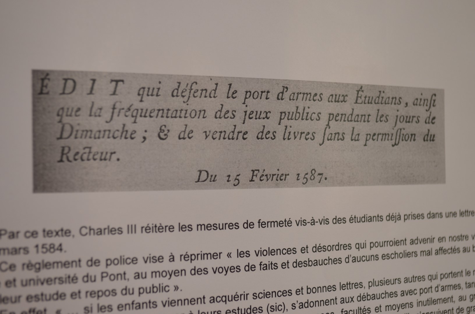 Aux origines, il y avait l’Université de Pont-à-Mousson, créée par le pape Grégoire XIII et placée sous l’autorité des jésuites. La vie étudiante y était très règlementée… Les journées, qui s’étalaient de 5h à 21h, étaient rythmées par de nombreux rites religieux.