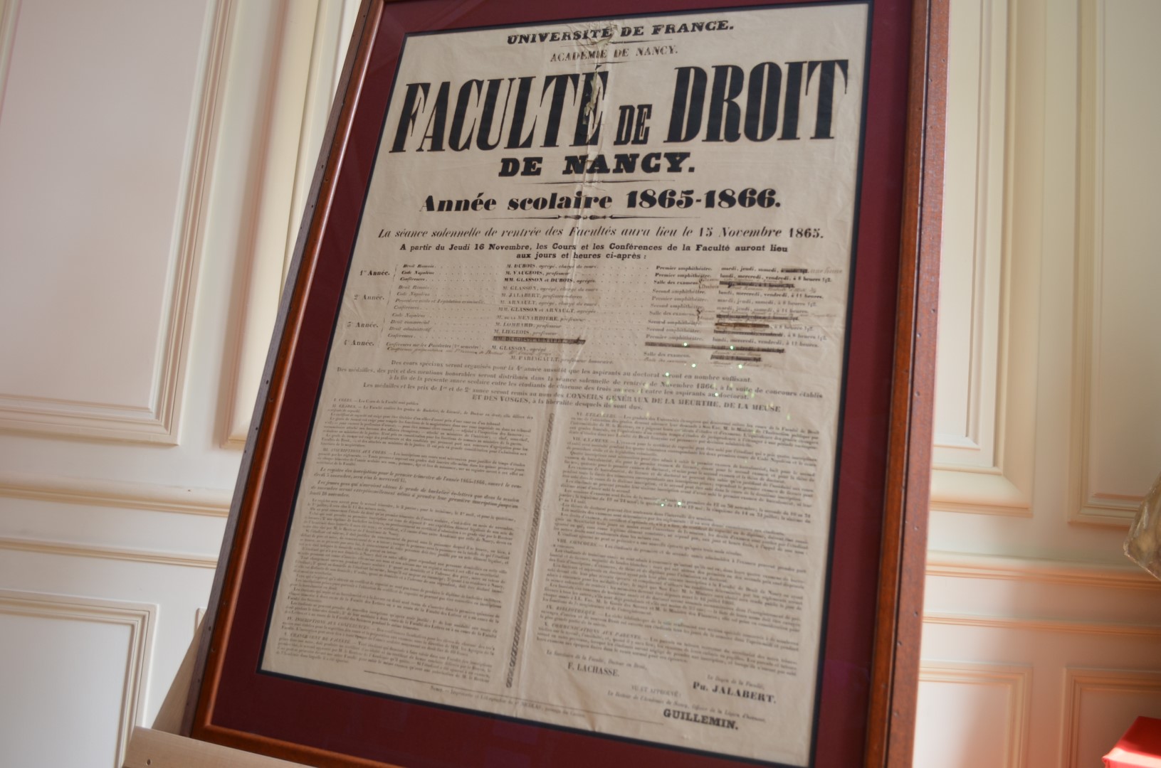 La Faculté de Droit célèbre les 150 ans de son rétablissement à Nancy. A cette occasion, un colloque était organisé du 17 au 19 septembre et une exposition retraçant son histoire présentée jusqu’au 27 septembre. Nous l’avons visitée pour vous et vous invitons à la découvrir dans son intégralité.