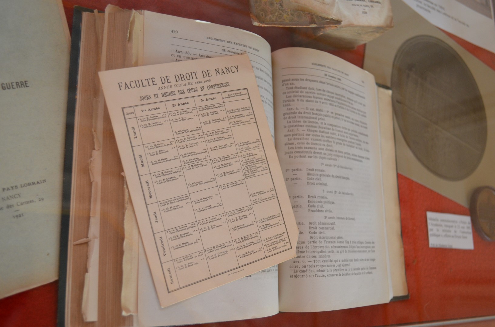 Nombreux sont les professeurs qui ont assuré le prestige de la faculté depuis sa création. L’exposition leur fait honneur en s’attardant sur certains d’entre eux. Des préoccupations locales aux implications nationales, les bancs de la faculté de droit de Nancy peut se targuer d’avoir accueilli des personnalités brillantes.