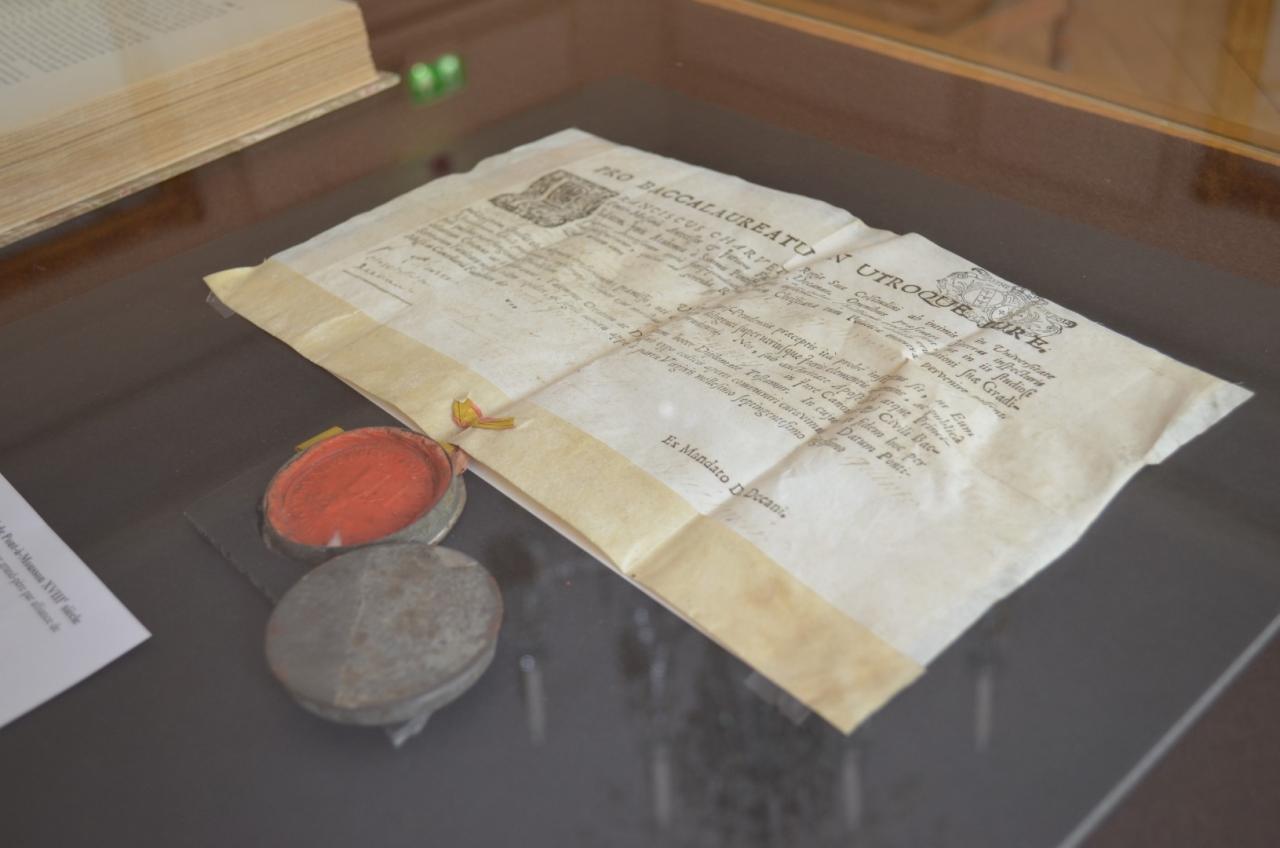 | Un diplôme authentique du baccalauréat de 1735, premier diplôme universitaire |