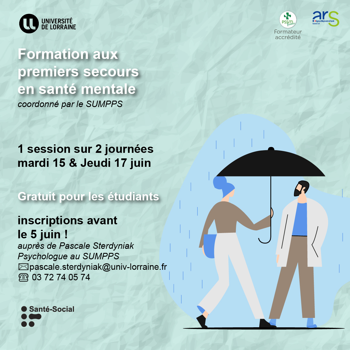 Par e-mail auprès de Pascale Sterdyniak, psychologue au SUMPPS : pascale.sterdyniak@univ-lorraine.fr