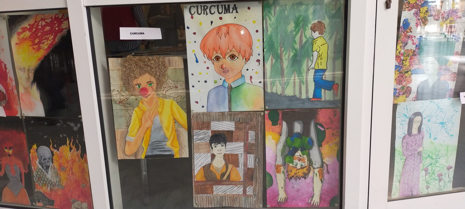Dès le début de l’année, les élèves de Seconde en Arts appliqués option Culture et Design ont lu la pièce. Puis avec leur enseignante Raphaëlle Legouverneur, ils ont réfléchi à la symbolique des noms, au tempérament de chaque personnage. Après avoir passé l’étape des croquis, les élèves ont réalisé les portraits des personnages en attribuant à chacun d’entre eux une texture et une gamme de couleur qui reflètent leurs différentes personnalités. La création des affiches relève d’un travail en groupe dans lequel ces mêmes éléments ont été pris en compte.