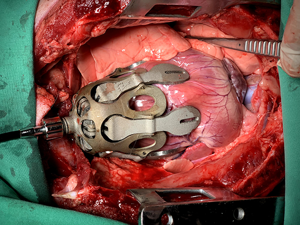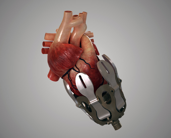 Le dispositif médical implantable combine un exosquelette motorisé imprimé en 3D avec de la poudre de titane, conçu par l’Ecole de Chirurgie et les start-up nancéiennes Velvet Innovative Technologies et HanaCorps, et une membrane d’origine naturelle développée à l’IJL. Il sera placé de façon mini-invasive autour du cœur défaillant pour améliorer ses capacités contractiles.