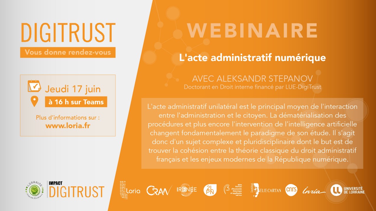 Il sera présenté par Aleksandr Stepanov, Doctorant en Droit interne financé par LUE-DigiTrust.