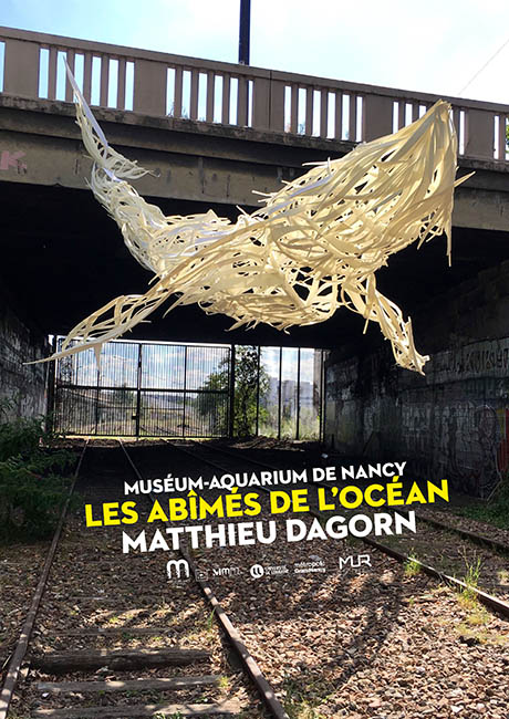 Sensible à la préservation de l’environnement et à la protection des océans, Matthieu Dagorn s’est spécialisé dans la création de sculptures animales monumentales à partir de matériaux de récupération. Constituée d’une baleine et d’un cortège de méduses l’installation immerge poétiquement les visiteurs.euses dans les profondeurs de l’océan.