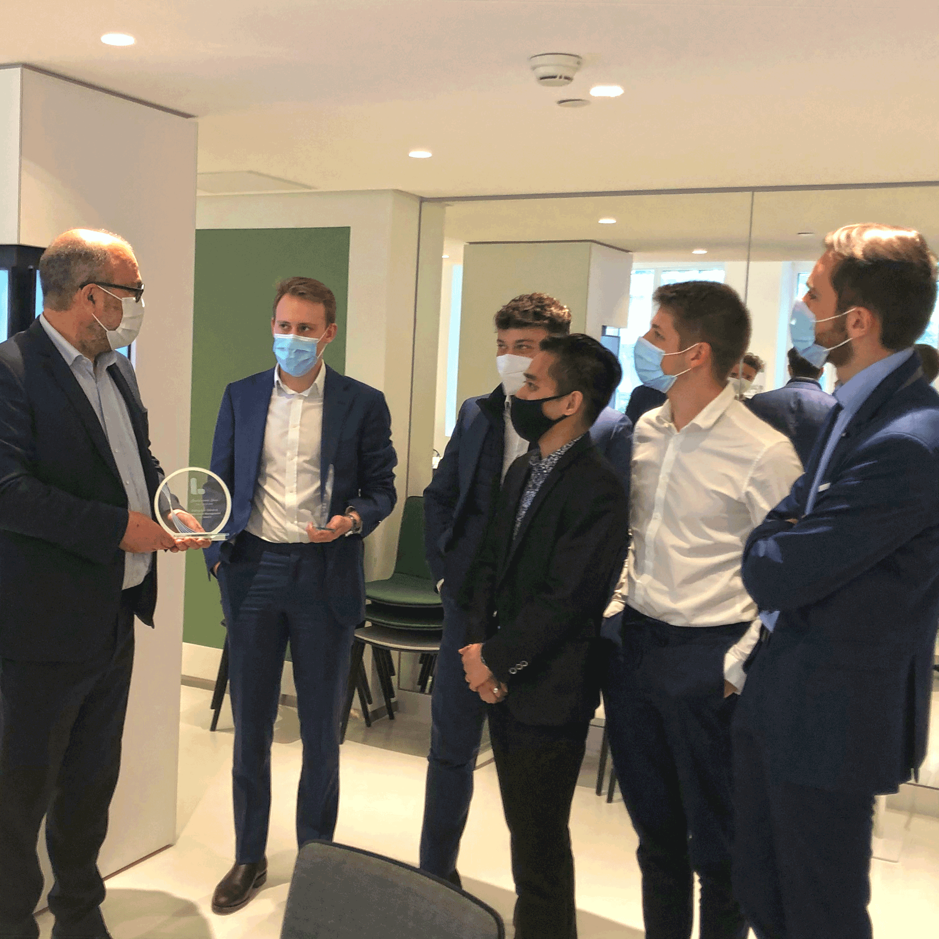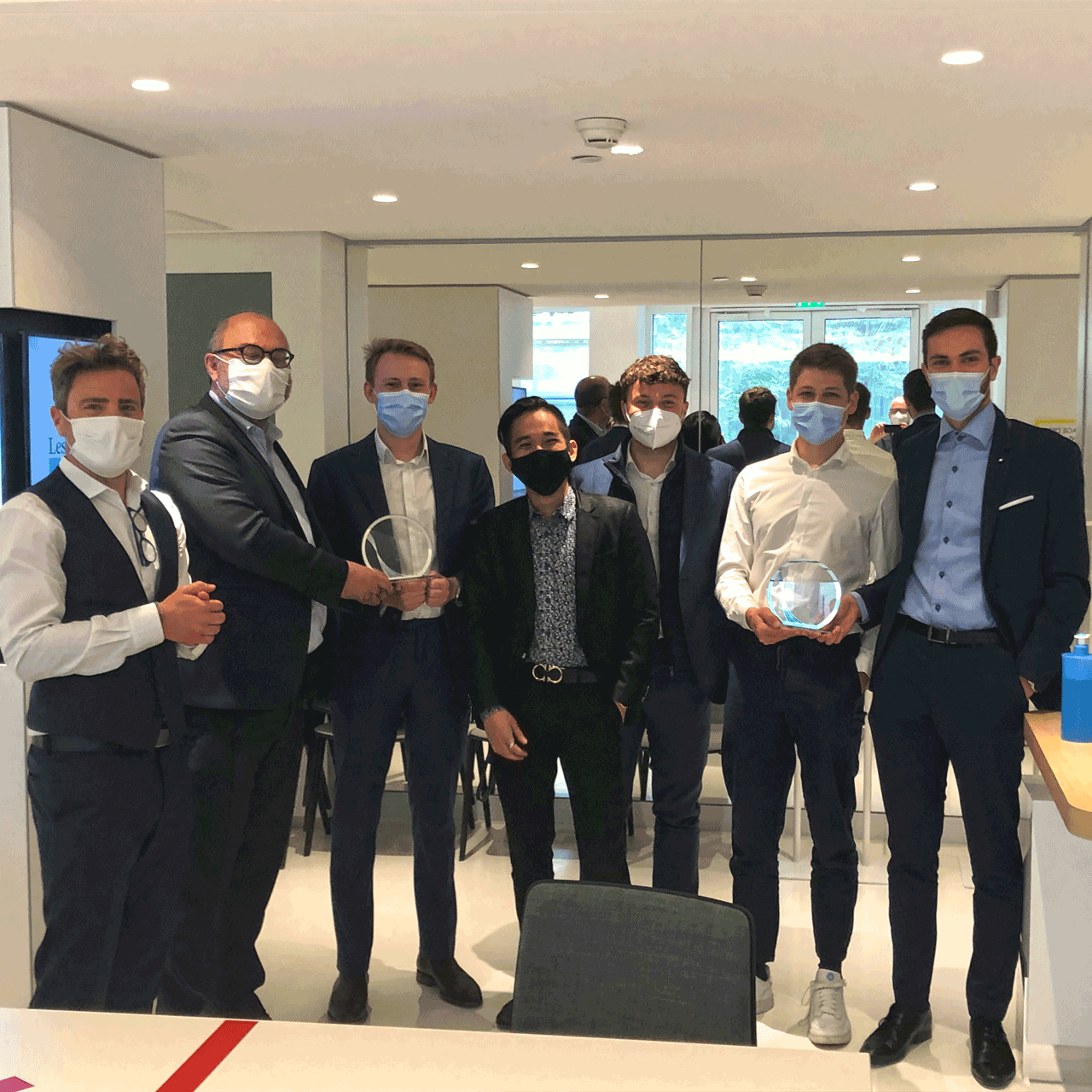 L’équipe gagnante du concours et du challenge investissement ISR composée des étudiants de Master 2 Finance - Analyse Financière & Gestion d'Actifs de l'IAE NANCY School of Management : Pierre Kopytowski, Tom Rosan, Axel Fousse, Romain Besson, et Siriphet Nouansengsy