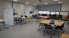 - Tables et chaises mobiles de 5 couleurs différentes pour organiser vos groupes en îlots de travail