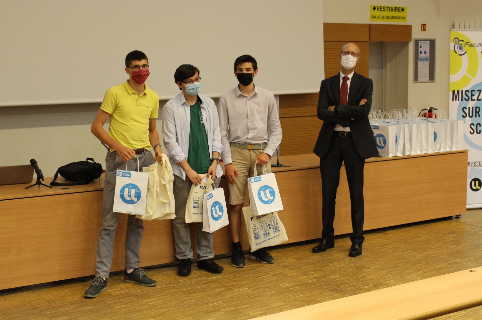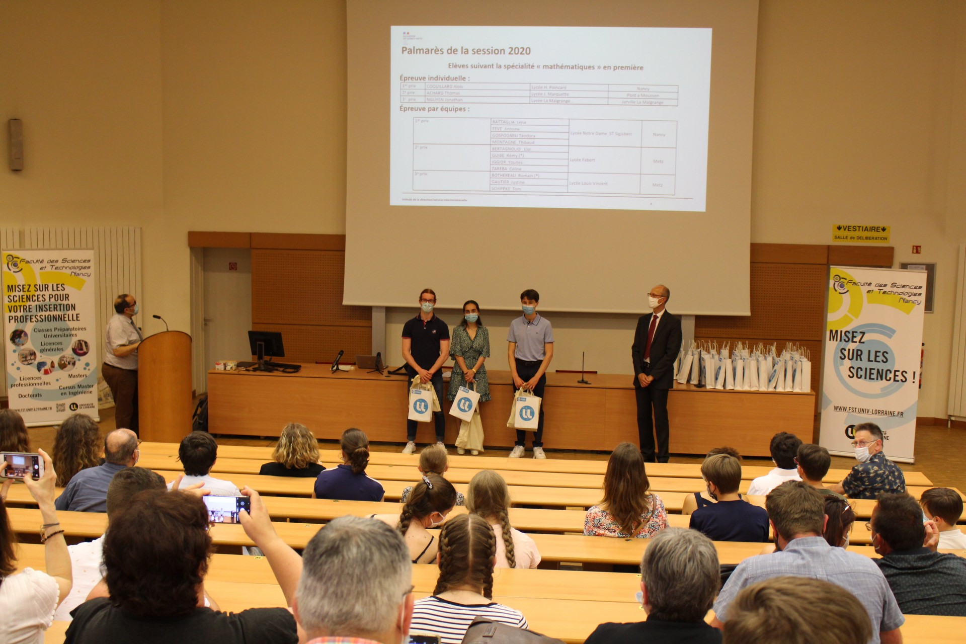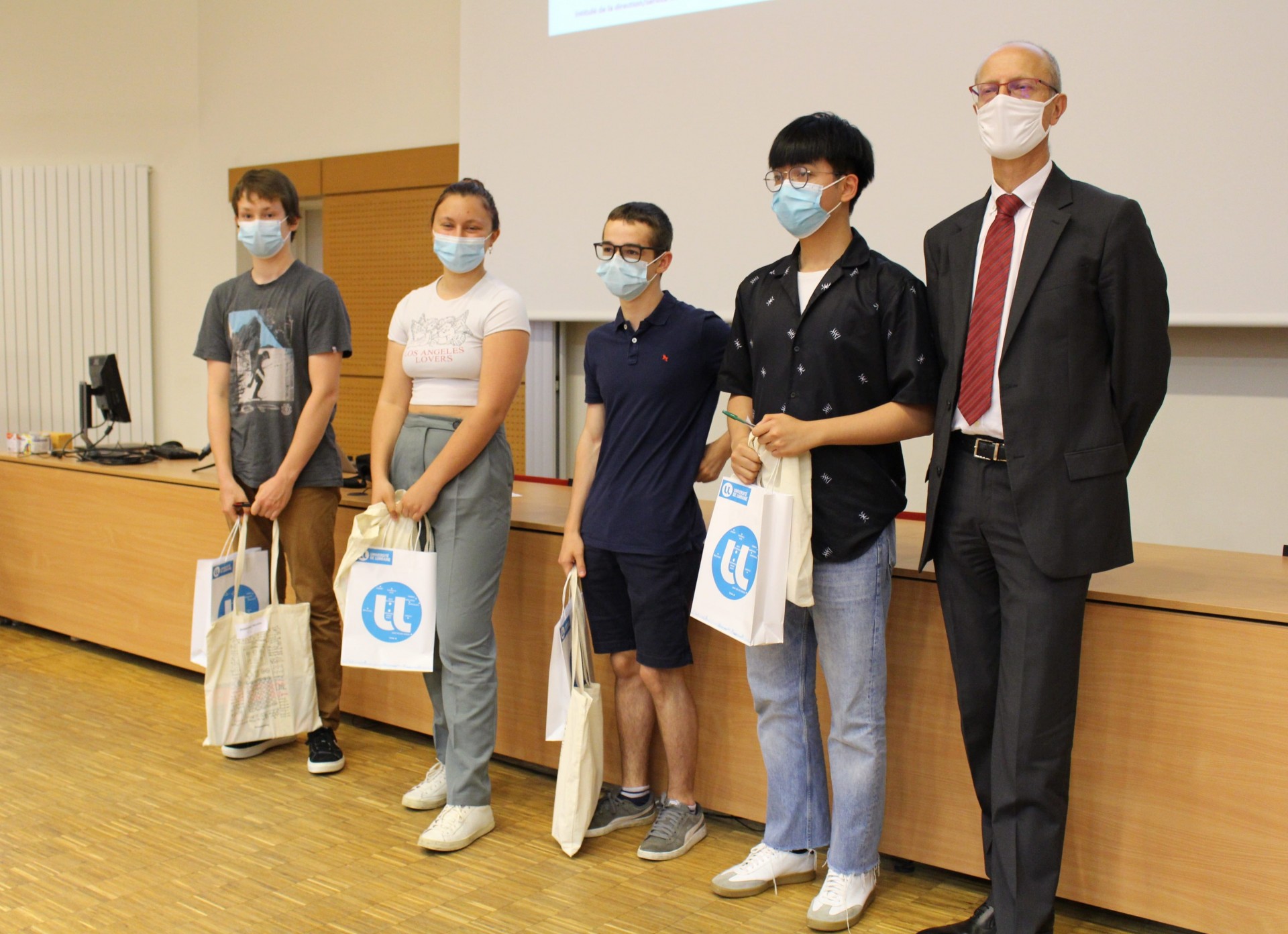 Cinquante élèves ont été applaudis lors de la cérémonie de remise des prix le 16 juin 2021 pour leur travail et leur esprit de compétition. 39 lycéens et 11 collégiens, dont 13 filles, sont repartis les bras chargés de cadeaux offerts par les partenaires de l’événement : les entreprises Casio, Texas instrument, Numworks et Wolfram, le Rectorat de Nancy-Metz, l’Université de Lorraine et la Faculté des Sciences et Technologies.