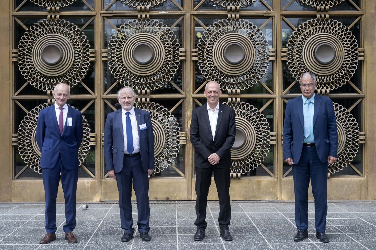 Antoine Petit, président directeur-général du CNRS, Eric Trappier, président directeur-général de Dassault Aviation, représenté par Bruno Stoufflet, directeur de l’innovation, Michel Deneken, président de l’Université de Strasbourg, et Pierre Mutzenhardt, président de l’Université de Lorraine, représenté par Frédéric Villieras, vice-président du conseil scientifique de l’Université de Lorraine, ont procédé lundi 5 juillet au lancement officiel du laboratoire commun de recherche « Matériaux fonctionnels innovants pour l’aéronautique » (MOLIERE). Son objectif est de concevoir dans les domaines de l'acoustique, de l'électromagnétisme et de l'antigivre, de nouveaux matériaux pour les avions de demain.