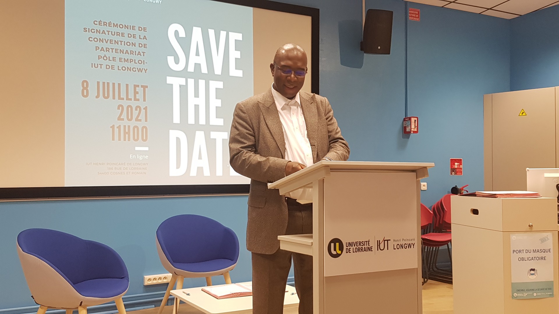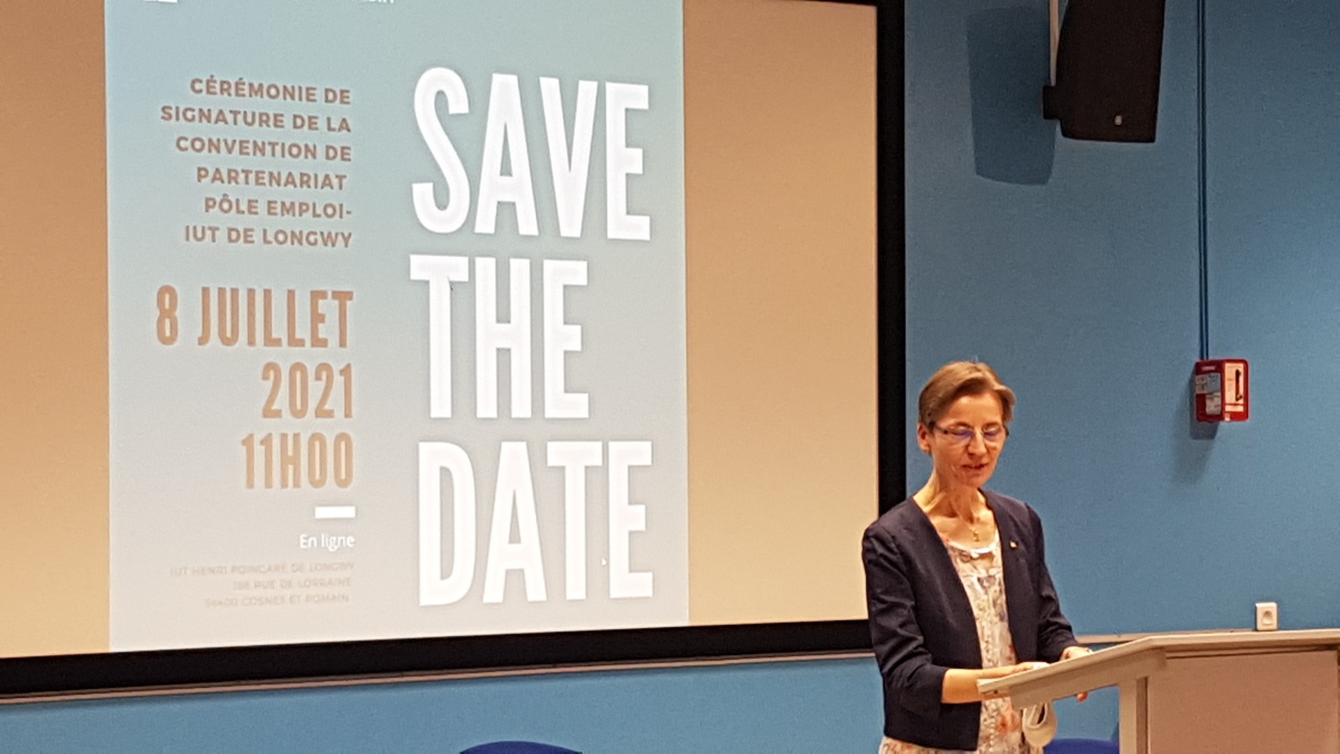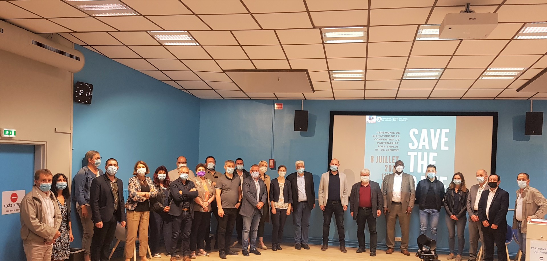 Le jeudi 8 juillet 2021, s’est tenue à l’IUT Henri Poincaré de Longwy la cérémonie de signature d’une convention de partenariat entre l’IUT de Longwy et le Pôle Emploi. Cette cérémonie a réuni les actrices et acteurs économiques et sociaux du bassin d’emploi de Longwy, les responsables d’organisme de formation du territoire, les représentant-e-s et responsables politiques locaux et Universitaires.