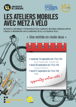 L'Université de Lorraine et Metz à Vélo organisent des ateliers mobiles sur les campus de Metz : initiation à la mécanique et réparation de vélo, diagnostic mécanique, marquage antivol, conseils et informations sur les itinéraires vélos, etc. :