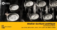 Emanuel Bémer, son dada, c’est les mots : il s’invente des équations verbales pour le plaisir de rencontrer une inconnue et de résoudre son mystère. L’atelier qu’il te proposera sera un moment d’échange, de partage et de création autour de la poésie sous toutes ses formes ! Emanuel est curieux d’échanger à propos du mot et de la voix, et de la façon de les faire se rencontrer.