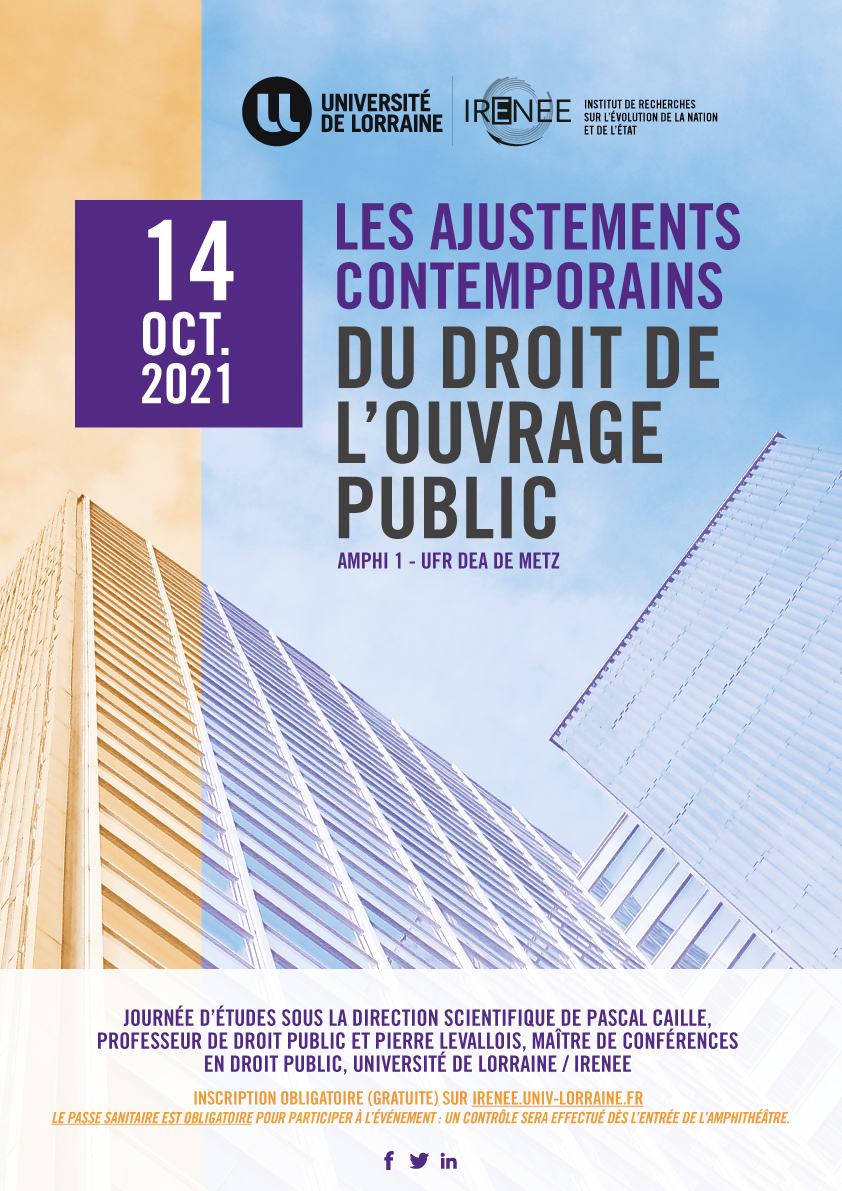 Le 14 octobre 2021 de 9h à 17h sous la direction scientifique de Pascal CAILLE, Professeur de droit public et Pierre LEVALLOIS, Maître de conférences en droit public, Université de Lorraine / IRENEE.