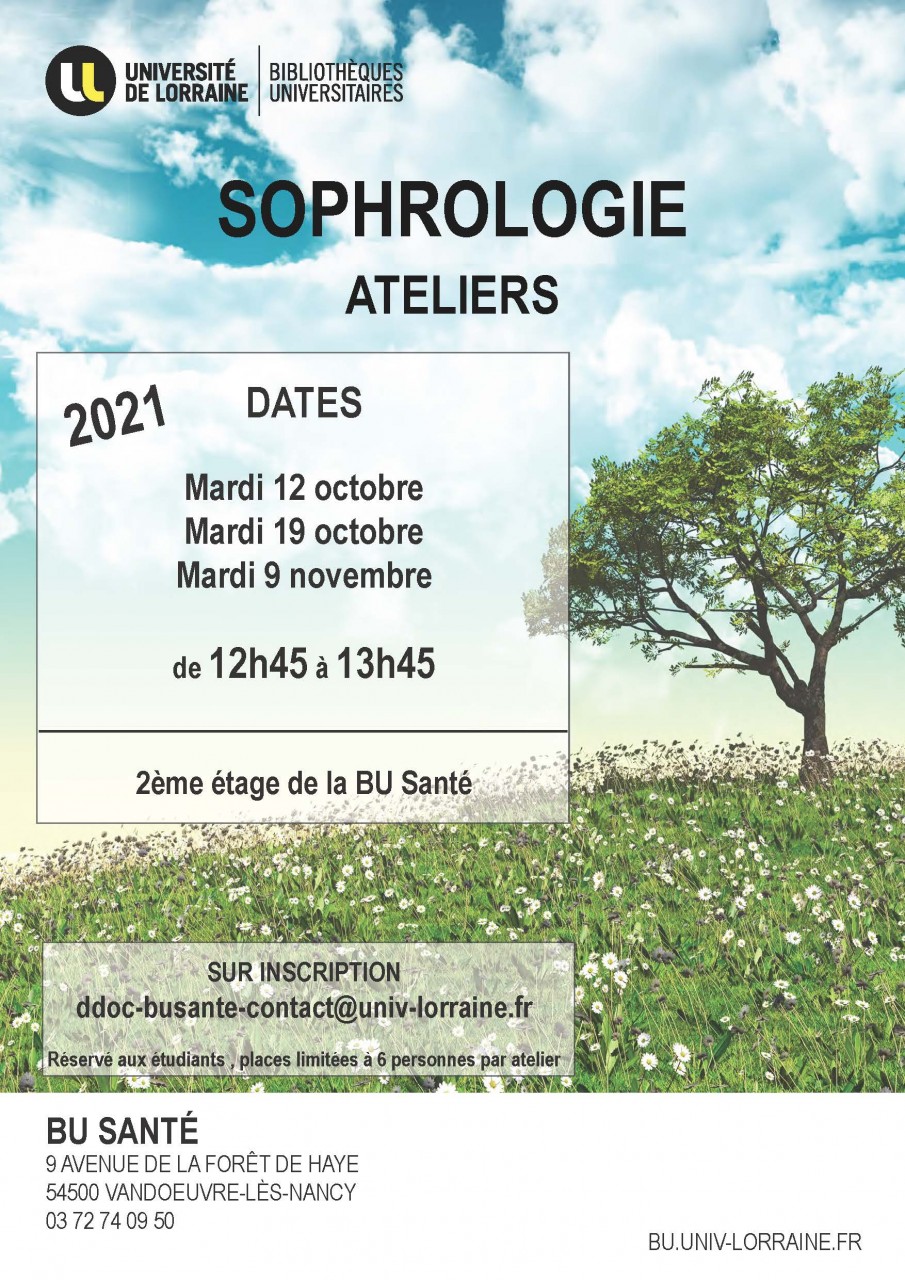 En partenariat avec le SUMPPS, la BU Santé vous propose des ateliers découverte de la sophrologie les mardis 12, 19 octobre et 9 novembre, de 12h45 à 13h45.