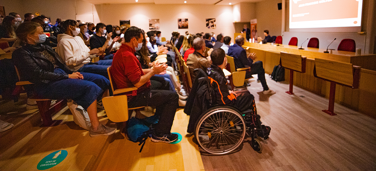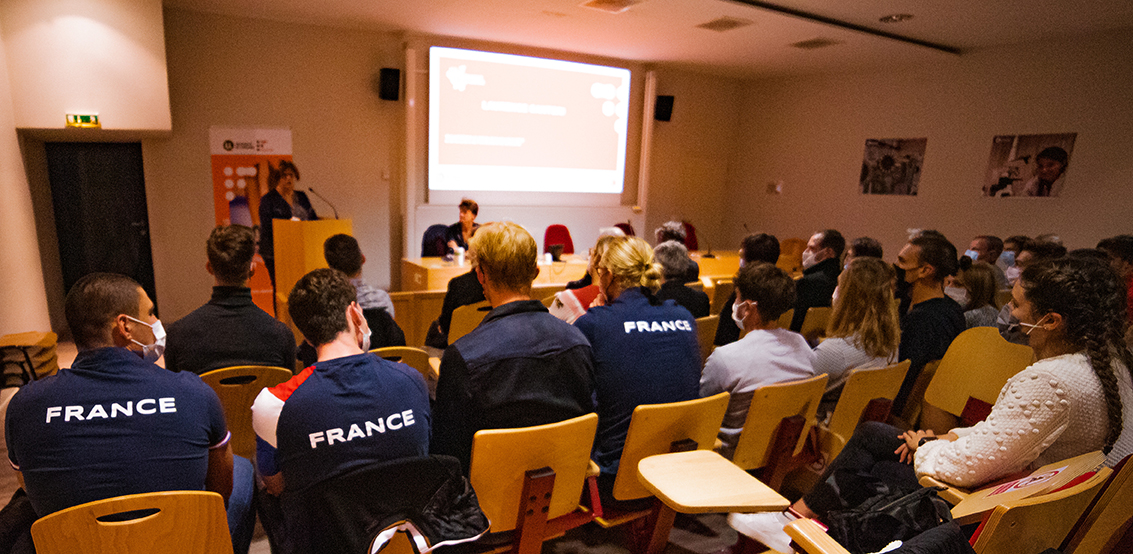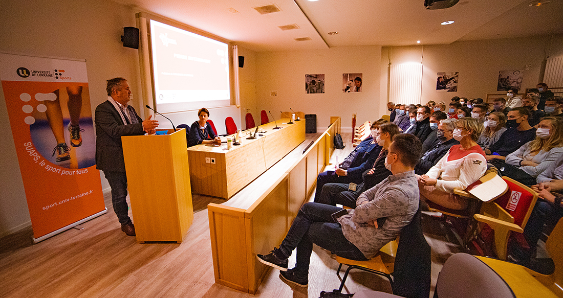 Ces aménagements ont été détaillées par Sophie Pierron, directrice adjoint du SUAPS qui coordonne l’accompagnement de ces sportifs dans leur carrière, qu’elle soit déjà avancée ou prometteuse. Être étudiant et sportif de haut niveau requiert de s’impliquer activement dans sa discipline, de la promouvoir ; atteindre ces objectifs est rendu possible par une adaptation des enseignements aux périodes d’entraînement et de compétition ; notamment par le soutien de la Direction de la Formation.