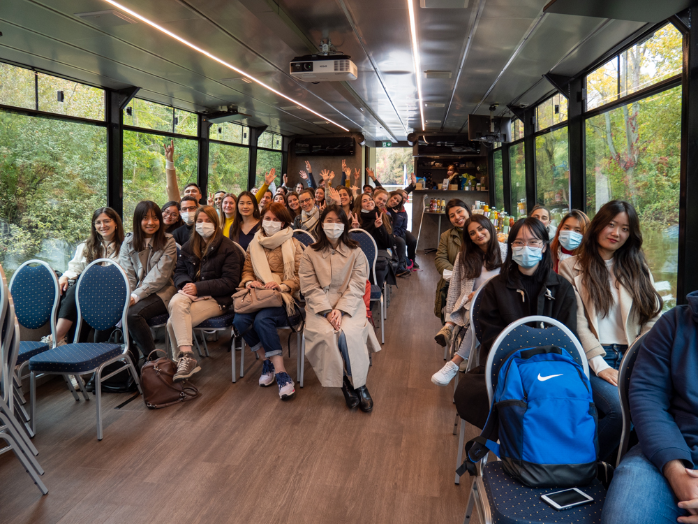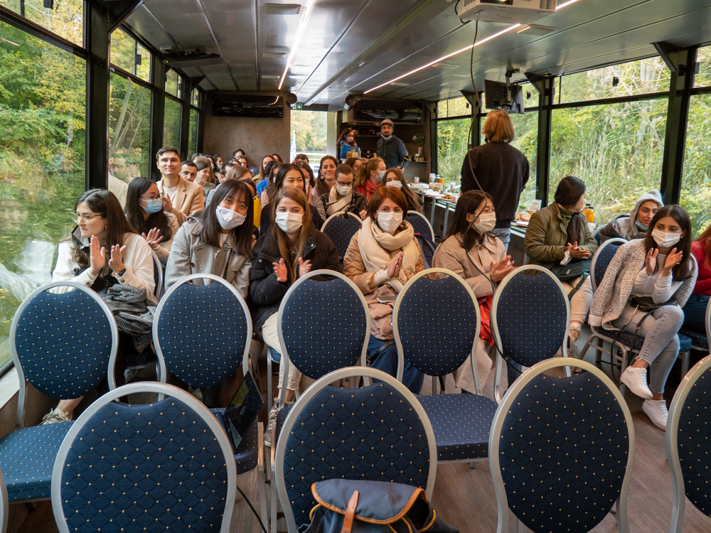 Pendant 2 heures, la cinquantaine d’étudiants Erasmus et internationaux (et leurs professeurs) présents ont profité de ce temps calme pour découvrir la ville, mais également les activités proposées par la Maison de l’étudiant (MDE) Lorraine Nord. Les animateurs - programmateurs ont utilisé le système de vidéoprojection du bateau électrique Le Graoully pour présenter toutes les activités, événements et accompagnement dont ils peuvent bénéficier à la MDE.