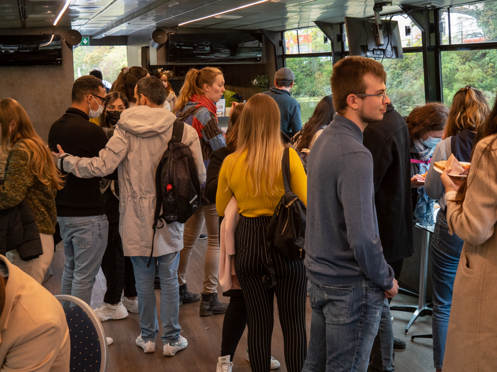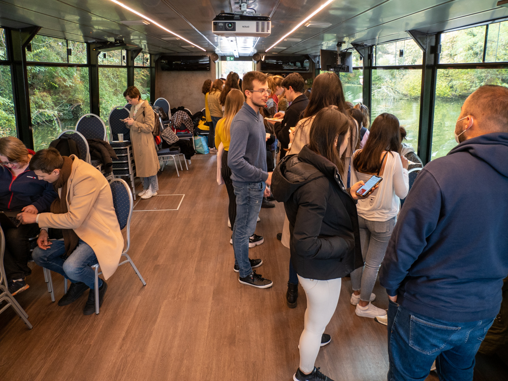 L’occasion aussi de les inciter à nous rejoindre sur notre serveur Discord dédié à la vie étudiante et échanger avec les autres étudiants et associations de l’Université de Lorraine. Après des échanges avec les équipes, les étudiants profité d’un buffet, toujours sur le bateau.