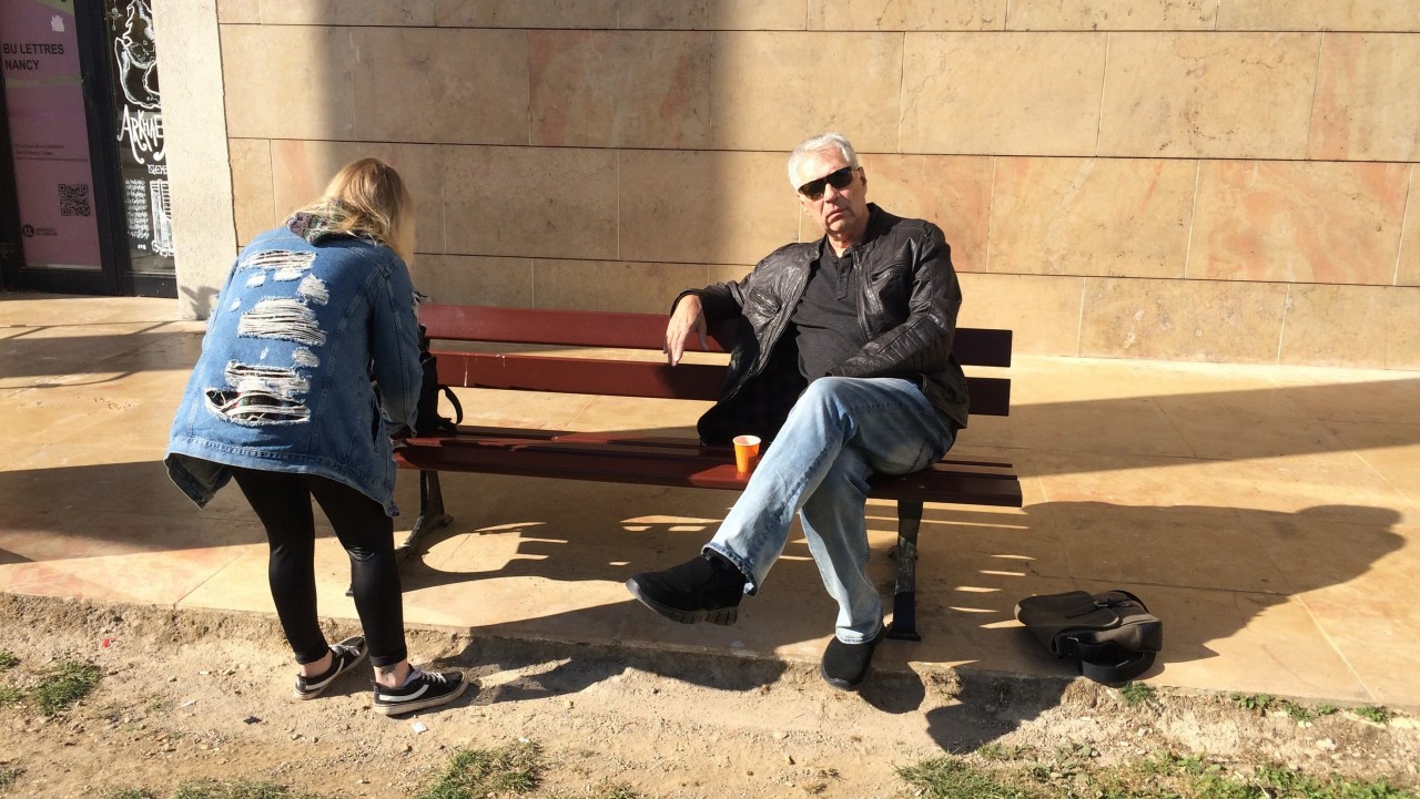 Mark SaFranko et une de ses étudiantes interprètes sur le campus Lettres et Sciences Humaines de Nancy