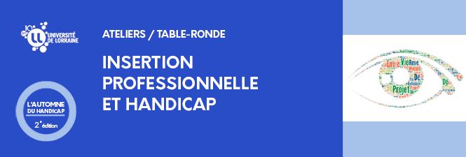 Intervenants : Catherine Justin, révélatrice de richesses humaines chez MAIF, Pauline Ridet, gestionnaire Parcours professionnel à l'Université de Lorraine, Xavier Thiebaux, directeur d'ESAT, avec le témoignage d'étudiants et anciens étudiants en situation de handicap