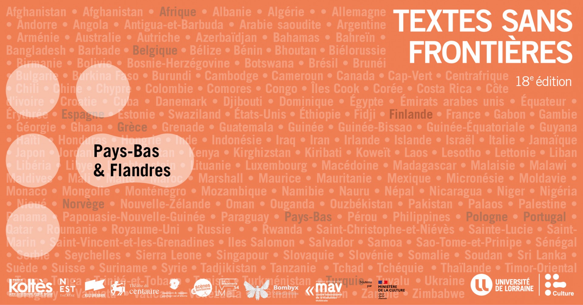 "Après s’être évadés dans des contrées lointaines voire sauvages, et après une année frustrante pendant laquelle l’édition 2020 de Textes sans frontières s’est passée à huis-clos, nous avons choisi de nous intéresser à nos voisins les plus proches : les Pays-Bas et les Flandres....