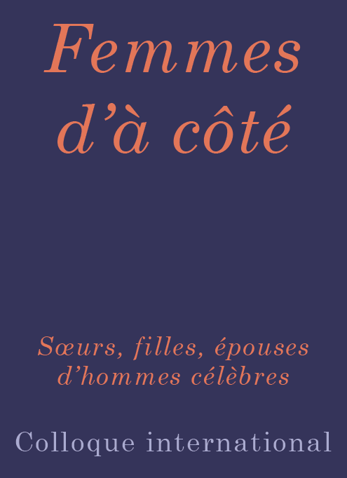 Sylvie Camet, professeure de Littérature comparée à l'Université de Lorraine, organise un colloque international sur le thème : "Femmes d'à côté. Soeurs, filles, épouses d'hommes célèbres", les 6 et 7 novembre 2014 sur le campus Lettres et sciences humaines de Nancy - Bâtiment G, salle 004.