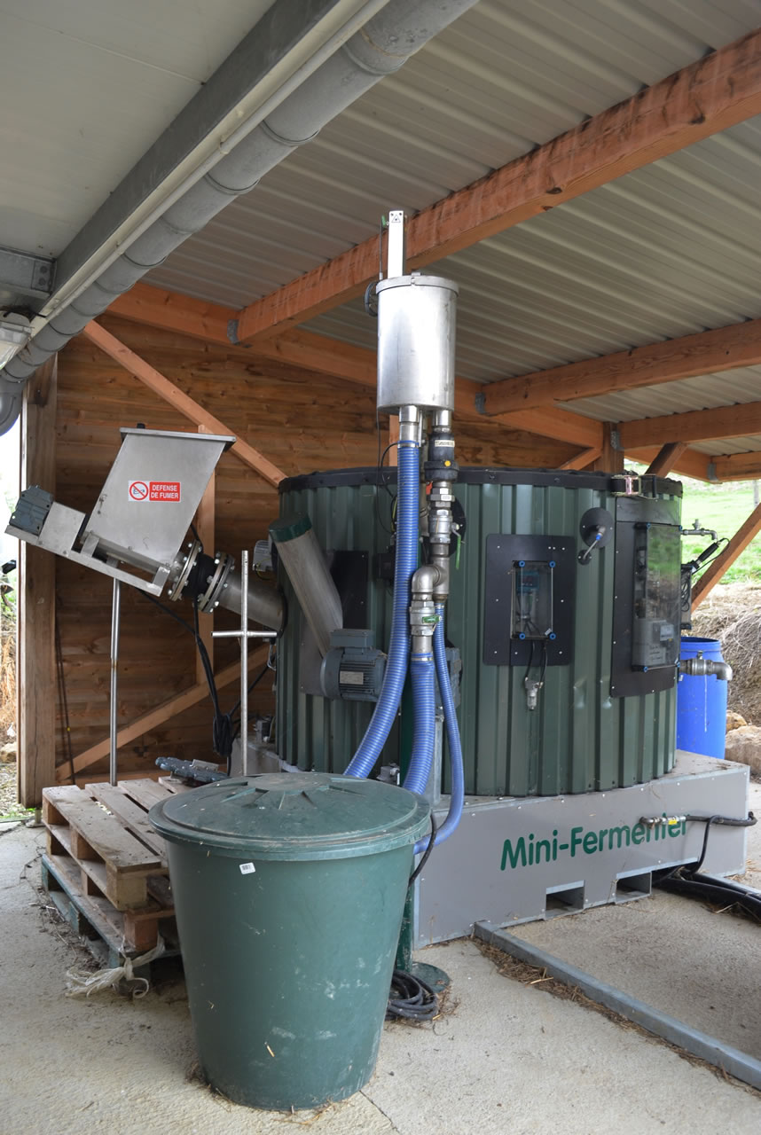 Ainsi depuis peu la fosse à fumier est presque vide et l’odeur caractéristique du purin est en passe de disparaître. Désormais, fumier et lisier sont recueillis et déposés dans les cuves d’un méthaniseur. Tout en évitant le rejet dans l’atmosphère de 300 tonnes d’équivalent CO2 par an, cette technologie produit de l’énergie et de l’engrais.