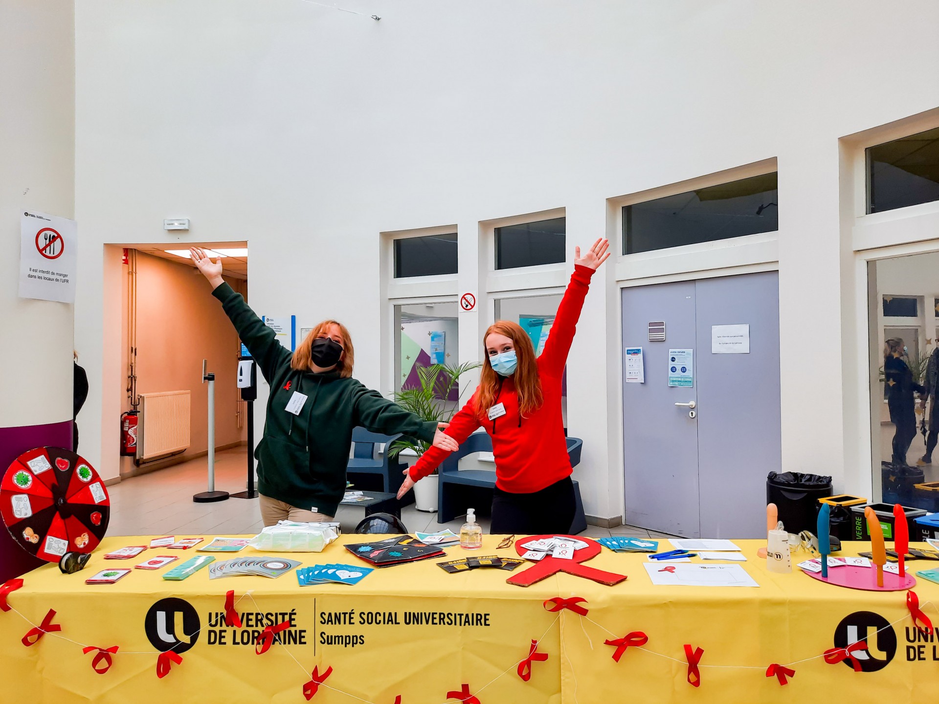 Le SUMPPS (service Santé Social des Étudiants) a organisé une campagne de sensibilisation à la prévention et aux dépistages du VIH et autres IST sur les campus de l’Université de Lorraine du 30 novembre au 2 décembre 2021 ; à l’occasion de la Journée mondiale de lutte contre le SIDA.