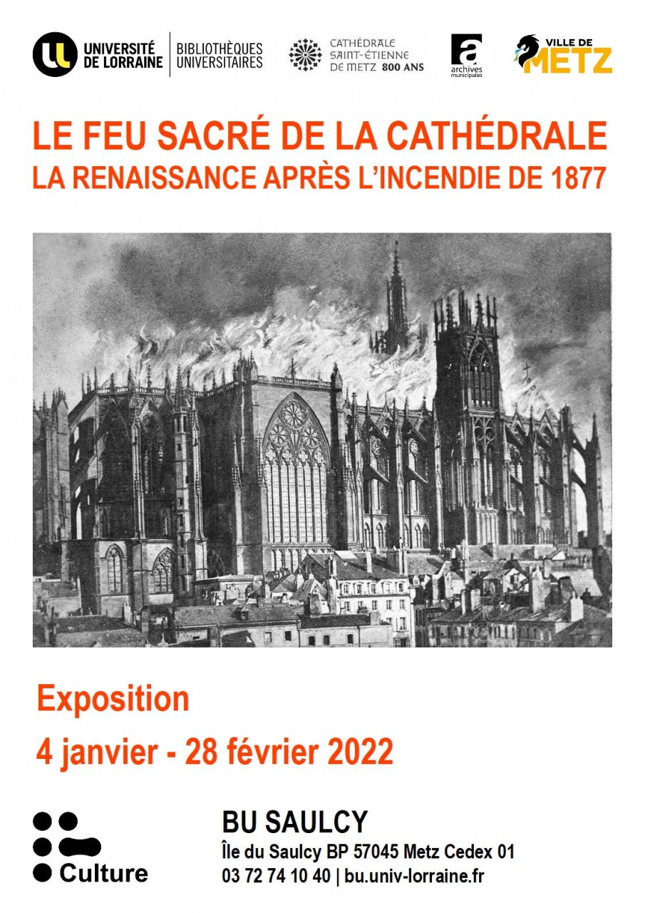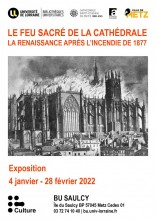 Les Archives municipales de la ville de Metz proposent une exposition inédite à la BU du Saulcy sur l'incendie de la toiture de la cathédrale en mai 1877 et sa reconstruction. Grâce aux documents d'époque, les visiteurs peuvent appréhender l'ampleur d'une opération de reconstruction d'un bâtiment historique après une catastrophe.