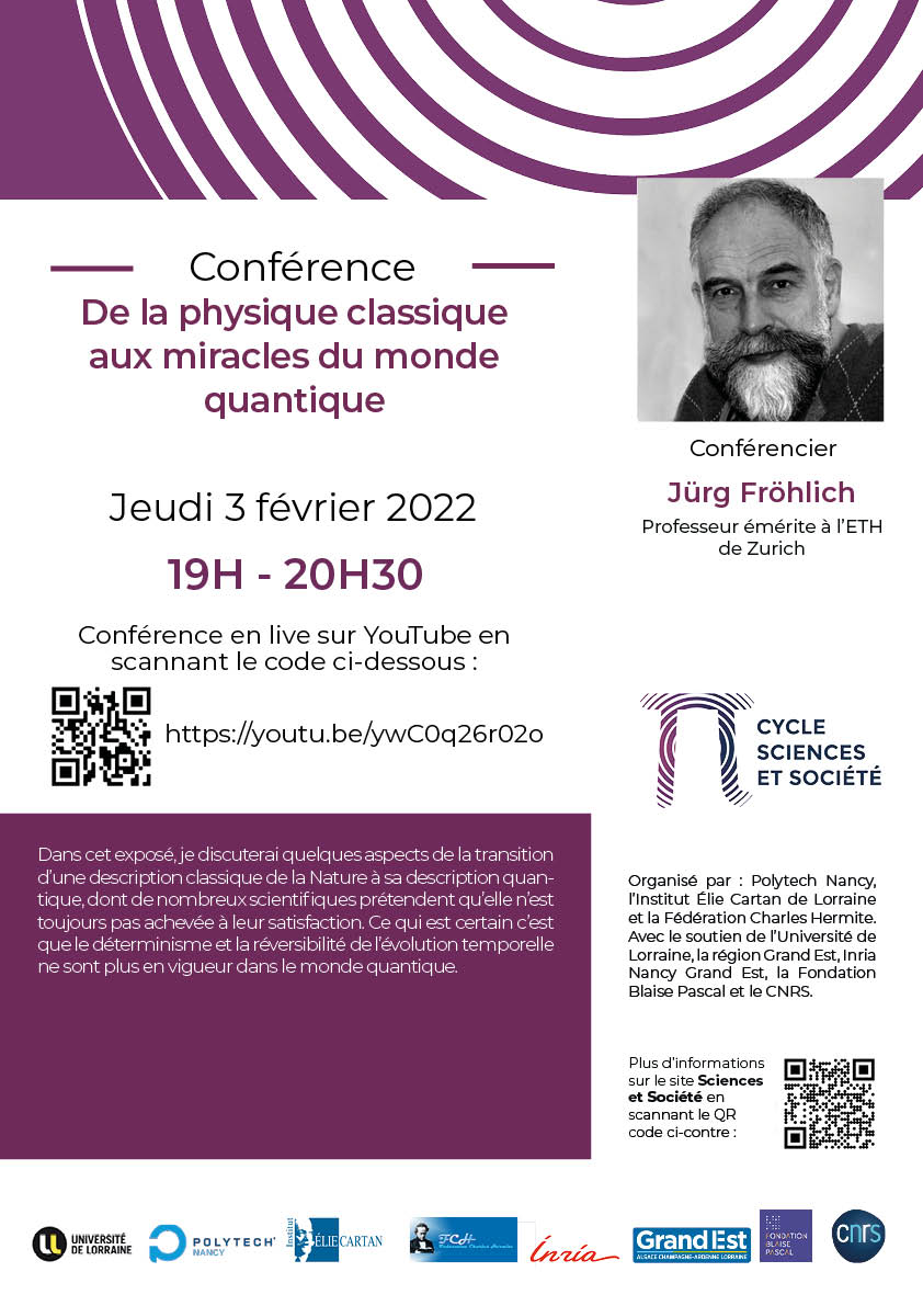 En raison du contexte sanitaire, cette conférence aura lieu jeudi 3 février 2022 de 19h à 20h30 en live sur YouTube en cliquant ici.