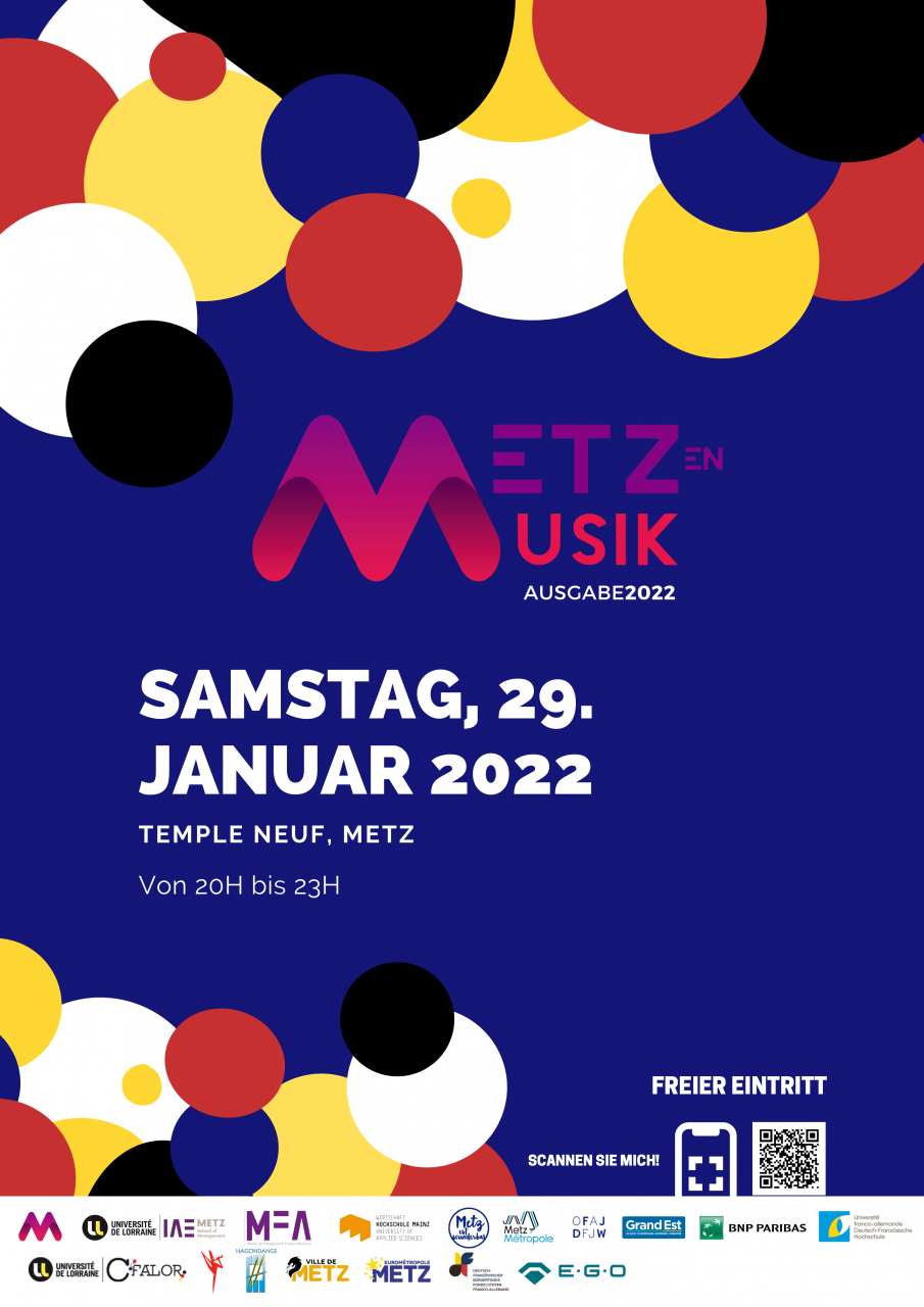 En partenariat avec la ville de Metz, cet événement a non seulement pour but de rassembler les enthousiastes du franco-allemand mais aussi tous les amateurs de musique ou curieux de la Grande Région.