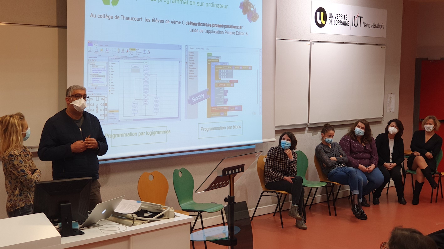 Témoignages : des responsables d’établissements et des enseignants référents de collèges Joliot Curie, Ferdinand Buisson et la Plante Gribé ainsi que des partenaires : Faculté des Sciences et Technologies, Pôle AIP-PRIMECA/S.mart lorraine, Maison pour la Science en Lorraine, PEEL, ENACTUS et le chargé de mission Bac+3/Bac-3 de l’IUT Nancy-Brabois.
