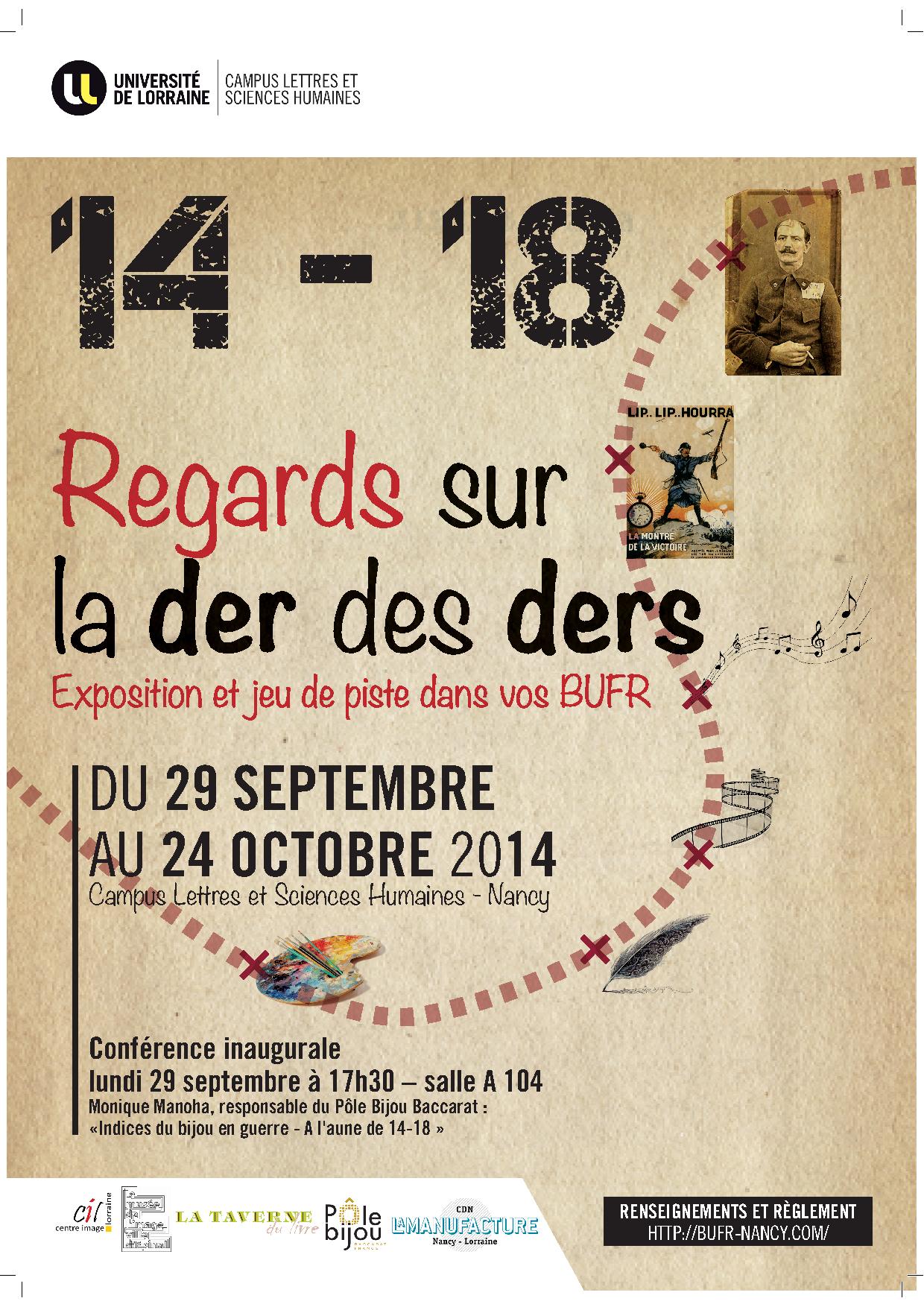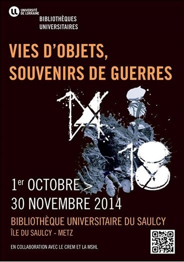 « Exposer dans les locaux des BU est une opportunité de toucher un public qui ne fréquente pas forcément les musées ou les galeries » renchérit Sylvie Deville, directrice adjointe de la DDE. La bibliothèque du Saulcy dont elle est responsable expose des objets liés à la Grande Guerre et prêtés par des personnels de l’Université de Lorraine. Cette exposition fait écho au colloque "Vies d'objets, souvenirs de guerres", organisé par le Centre de recherche sur les médiations (CREM) début octobre.