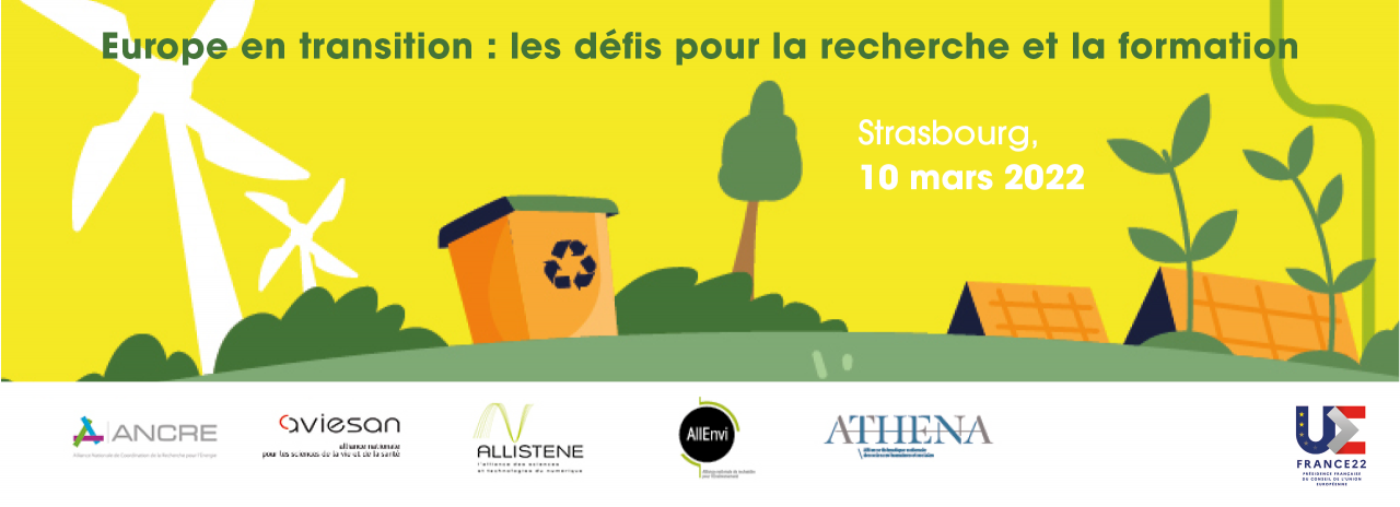 La conférence Europe en transition : les défis pour la recherche et la formation, organisée dans le cadre de la Présidence Française de l’Union Européenne (PFUE), est porté par France Universités et s'appuie sur l'initiative de 5 alliances de recherche (ANCRE, AVIESAN, ALLISTENE, AllEnvi et ATHENA). Elle se tiendra le 10 mars 2022 à Strasbourg (à l’hémicycle de la région Grand Est) de 10h à 17h30. L’évènement est proposé sous un format hybride, en présentiel ou distanciel, sur inscription.