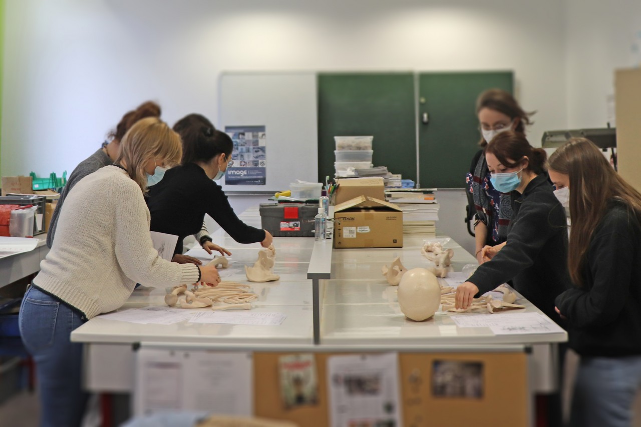 Le temps d’une demi-journée, ces moments d’échange et de pratique permettent aux étudiants, de la Licence 3 (Histoire de l’Art et Archéologie) au Master 2 (Mondes Anciens et Médiévaux), de découvrir différentes techniques et disciplines associées à l’archéologie : anthropologie, céramologie, étude du bâti. L’objectif est de combiner enseignements théoriques et manipulations, afin de mener les étudiants à mieux appréhender l’objet d’étude dans son contexte mais aussi pour lui-même, qu’il soit fait de pierre, de verre ou d’os. Accompagnés de spécialistes, les étudiants sont ainsi amenés à comprendre ce que ces méthodes, appliquées à l’étude de tous types de données, peuvent apporter à l’archéologue.