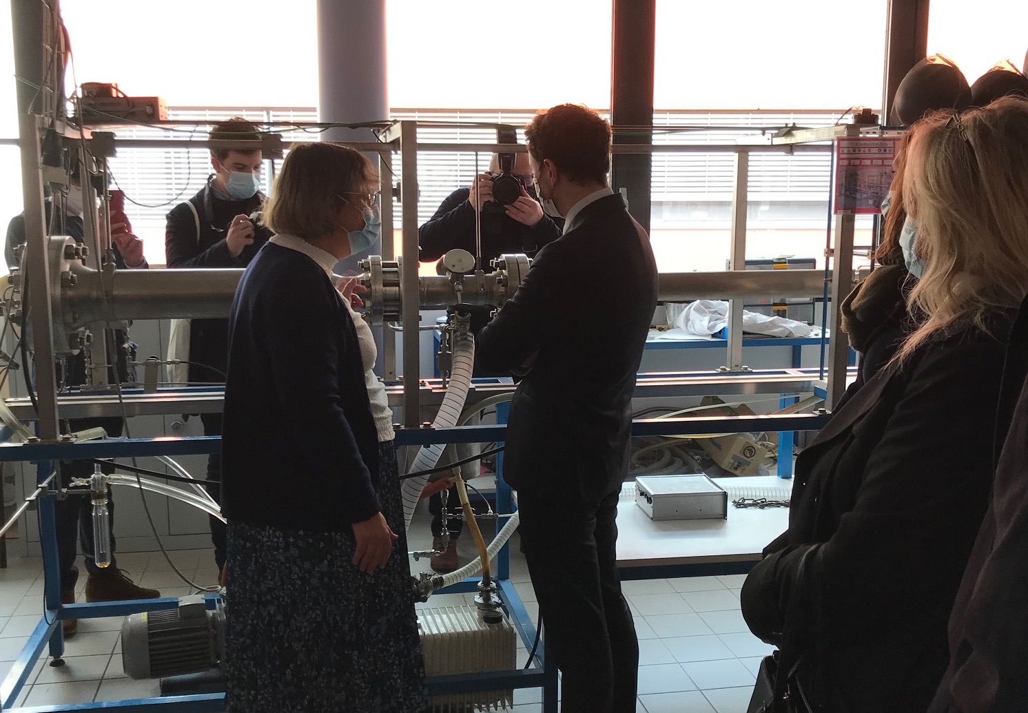 Clément Beaune était accompagné notamment de députés et sénateurs, de Julien Le Goff, Secrétaire général Sous-préfet de l'arrondissement de Nancy, d’Edwige Helmer-Laurent, déléguée régionale de la délégation Centre-Est du CNRS et de Pierre Mutzenhardt, président de l’Université de Lorraine. Le Secrétaire d’État a ainsi pu découvrir les travaux de Silvia Lasala, maître de conférences à l’Université de Lorraine et enseignante à l’ENSIC, Frédérique Battin Lerclerc, directrice de recherche CNRS et Baptiste Sirjean, chargé de recherche CNRS, tous trois du laboratoire LRGP (CNRS-Université de Lorraine).