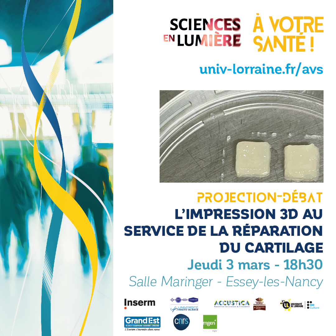 On pense à nos os, à nos muscles, à nos organes mais pense-t-on à nos cartilages ? Et pourtant ils jouent un rôle essentiel d’amortisseur et de roulement à billes dans notre corps. Ils peuvent être abîmés pour différentes raisons par exemple à cause de l’arthrose, ce qui génère des douleurs importantes. Il est primordial de développer de nouvelles stratégies pour le traitement des lésions du cartilage. L’essor de l’impression 3D ouvre de nouvelles opportunités en médecine personnalisée. C'est une approche révolutionnaire pour façonner des tissus et des organes à partir des cellules du patient. Cette technique va constituer une solution thérapeutique d'avenir adaptée à la production de cartilage articulaire.